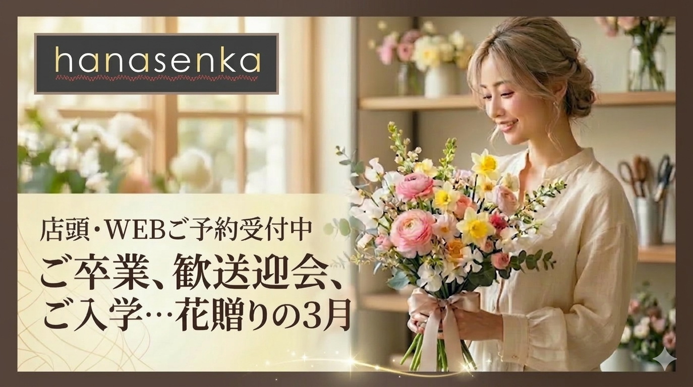 花の専門店 hanasenka では、一輪から自由に花を選び、好きな組み合わせであなただけの花束やフラワーアレンジをお作りいただけます。